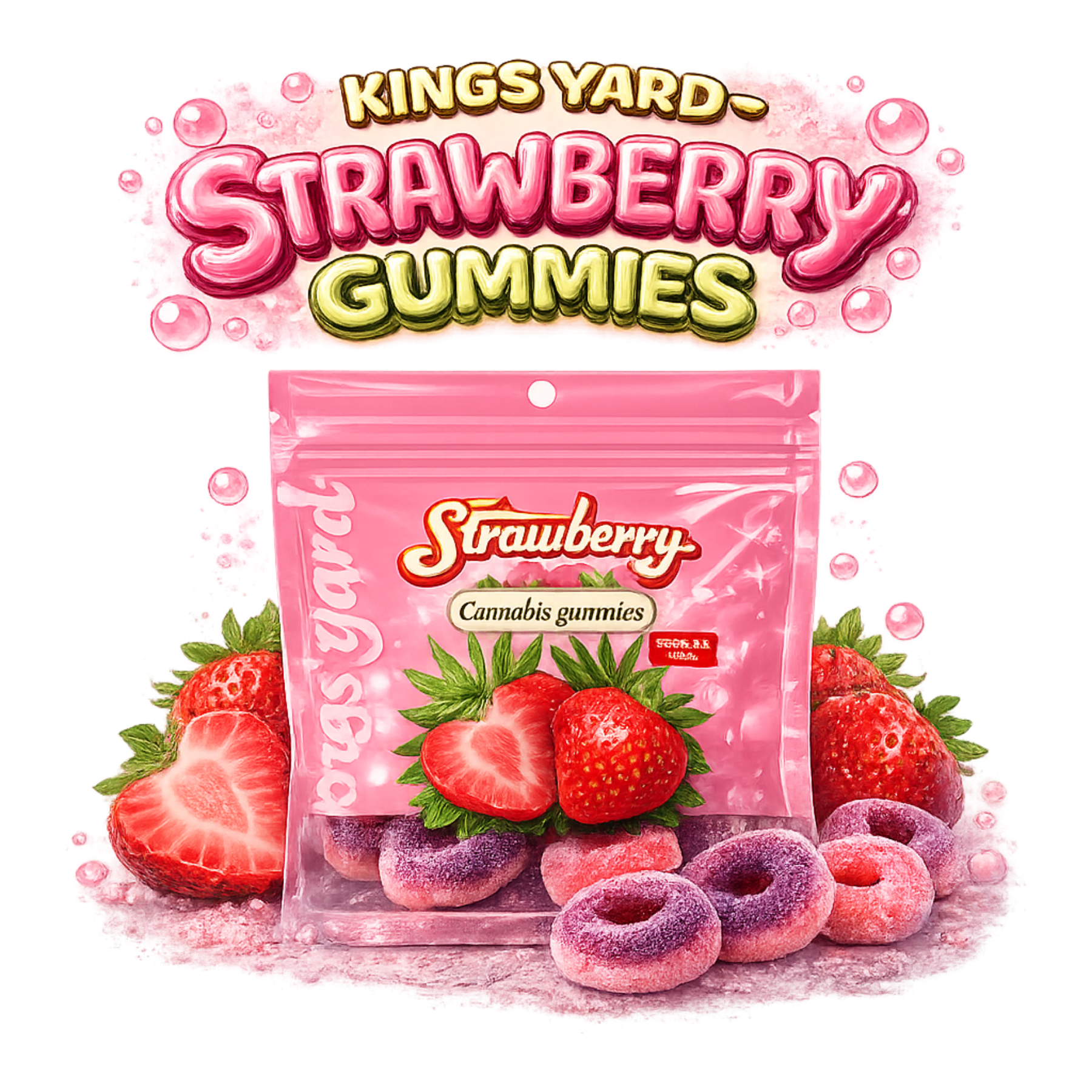 As Strawberry Gummies Kings Yard combinam sabor suave de morango com os benefícios nutricionais do óleo de sementes de cânhamo, criando um suplemento alimentar prático, seguro e agradável para o consumo diário.